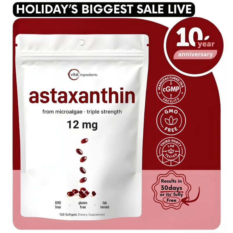 6,000x more powerful than Vitamin C. Sourced from pure microalgae. Clinically-dosed at 12mg. This isn't just another supplement—it's your cellular defense system in a bottle.